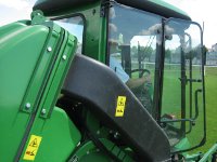 Les tontes des terrains de sport sont réalisés avec des tondeuses John Deere avec plateau de coupe frontale et bac de ramassage des déchets. Largeur 1,80 m.
